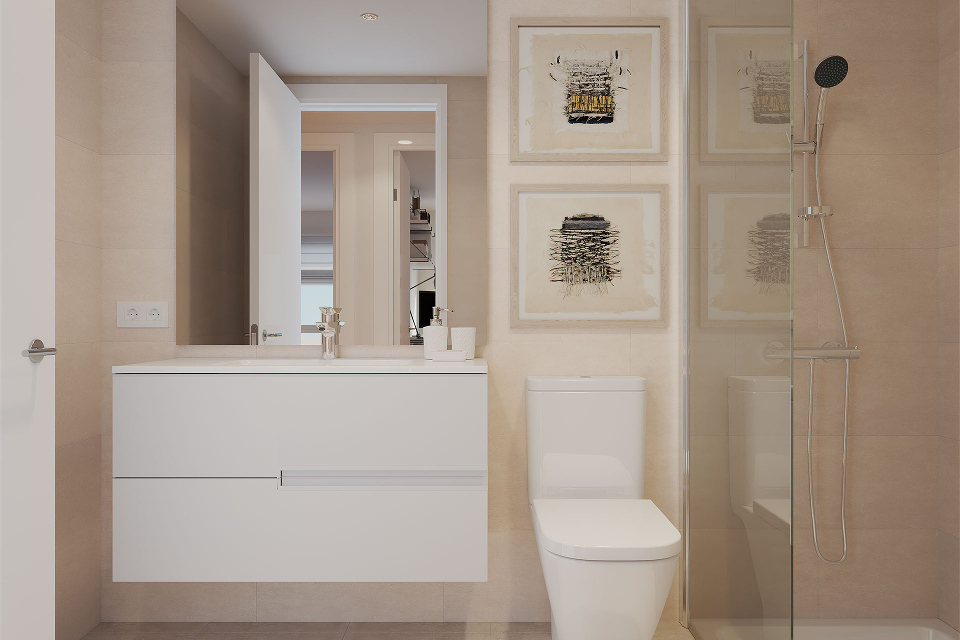 Los sanitarios serán de color blanco marca Roca Gap Compacto o similar. Se incluye mueble en el baño principal. La grifería será monomando cromada marca MR o similar.